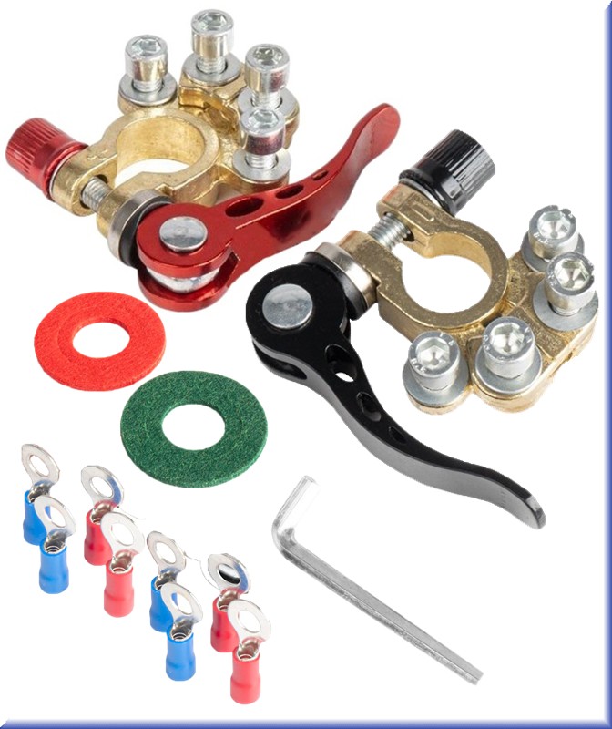 Univerzálne svorky na batériu so 4-cestnými rýchloupínacími konektormi sú moderným riešením, ktoré uľahčuje pripojenie a odpojenie batérie a ďalších elektrických zariadení v aute. Súprava obsahuje dve svorky (kladnú a zápornú) so štyrmi konektormi, čo umožňuje súčasné pripojenie viacerých káblov. Rýchloupínací mechanizmus zabezpečuje jednoduchú a bezpečnú prevádzku, čím sa eliminuje potreba špecializovaného náradia.
