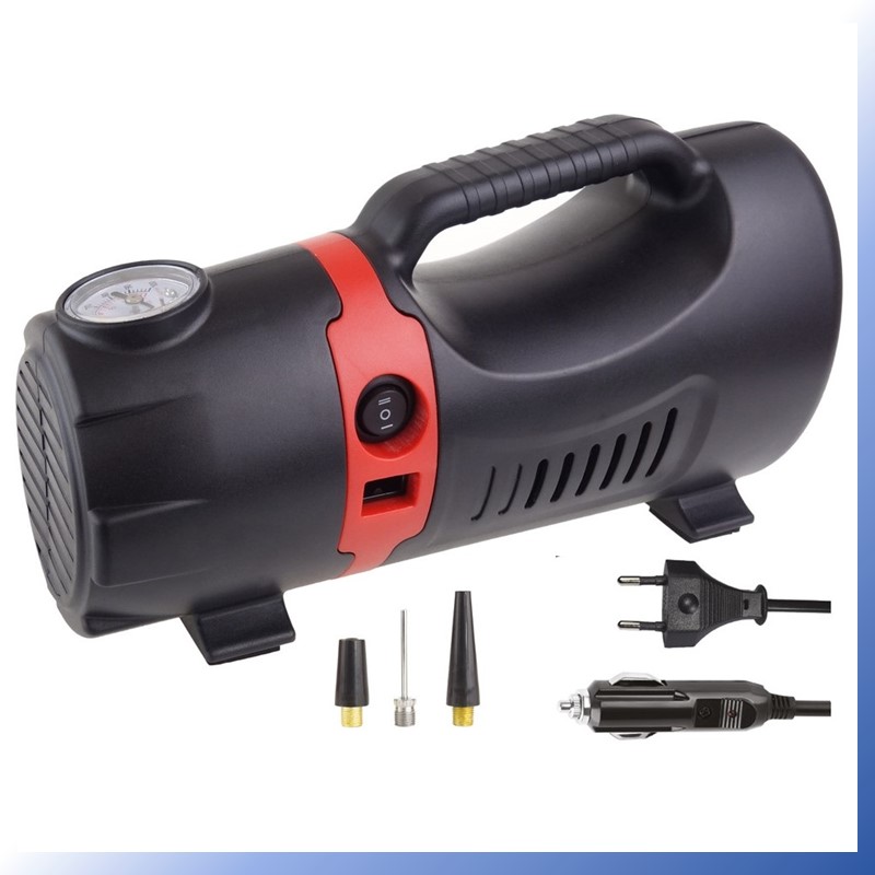 VLASTNOSTI: - napájanie cez zásuvku zapaľovača cigariet (12 V) / pripojenie pomocou elektrickej zásuvky 230V - prevádzkový tlak: maximálne 7 bar - sada obsahuje 3 konektory na nafukovanie, napríklad pre lopty, matrace, bicykle - integrovaný manometer - vyrobené z plastu - napájací kábel a priehradka na hadicu TECHNICKÉ PARAMETRE: - vstupné napätie: 12V DC / 230V AC - maximálny tlak: 7 bar/100 PSI - dĺžka napájacieho kábla: 3m - dĺžka hadice: 40 cm ROZMERY: (D x š x V) - 270 x 115 x 100 mm OBSAH SADY: - kompresor - 2 adaptéry + ihla