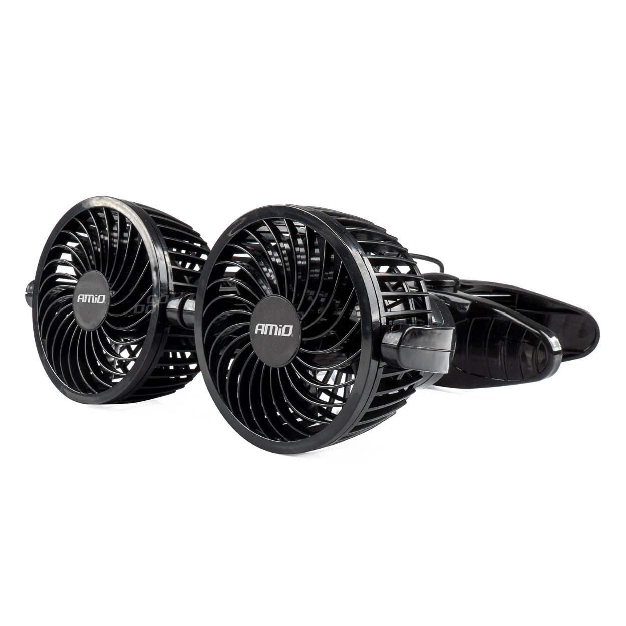 AMiO DVOJITÝ VENTILÁTOR DO AUTA NAPÁJANÝ ZO ZAPAĽOVAČA 12 V A MONTOVANÝ NA SPONU