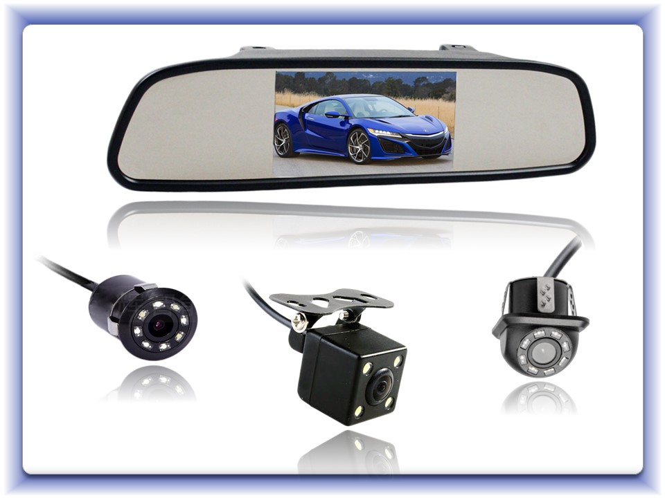 Výborný komplet pozostávajúci s farebnej kamery s nočným videním a LCD monitorom 4,3" je vhodný do každého automobilu. Má všestranné využitie, slúži ako spätné zrkadlo a po prepojení s cúvacou kamerou po zaradení spiatočky ako monitor a premieta obraz s kamery. Vďaka dvom VIDEO výstupom sa dá zároveň použiť aj z externým DVD, GPS a pod.