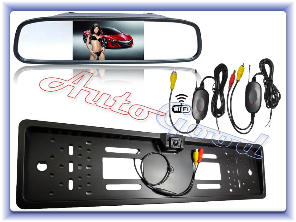 Výborný komplet pozostávajúci s farebnej kamery s nočným videním umiestnenej priamo v podložke špz a 4,3"LCD monitorom v spätnom zrkadle vhodný pre všetky typy vozidiel. Má všestranné využitie, slúži ako spätné zrkadlo a po prepojení s cúvacou kamerou po zaradení spiatočky ako monitor a premieta obraz s kamery bezdrôtovo WIFI.